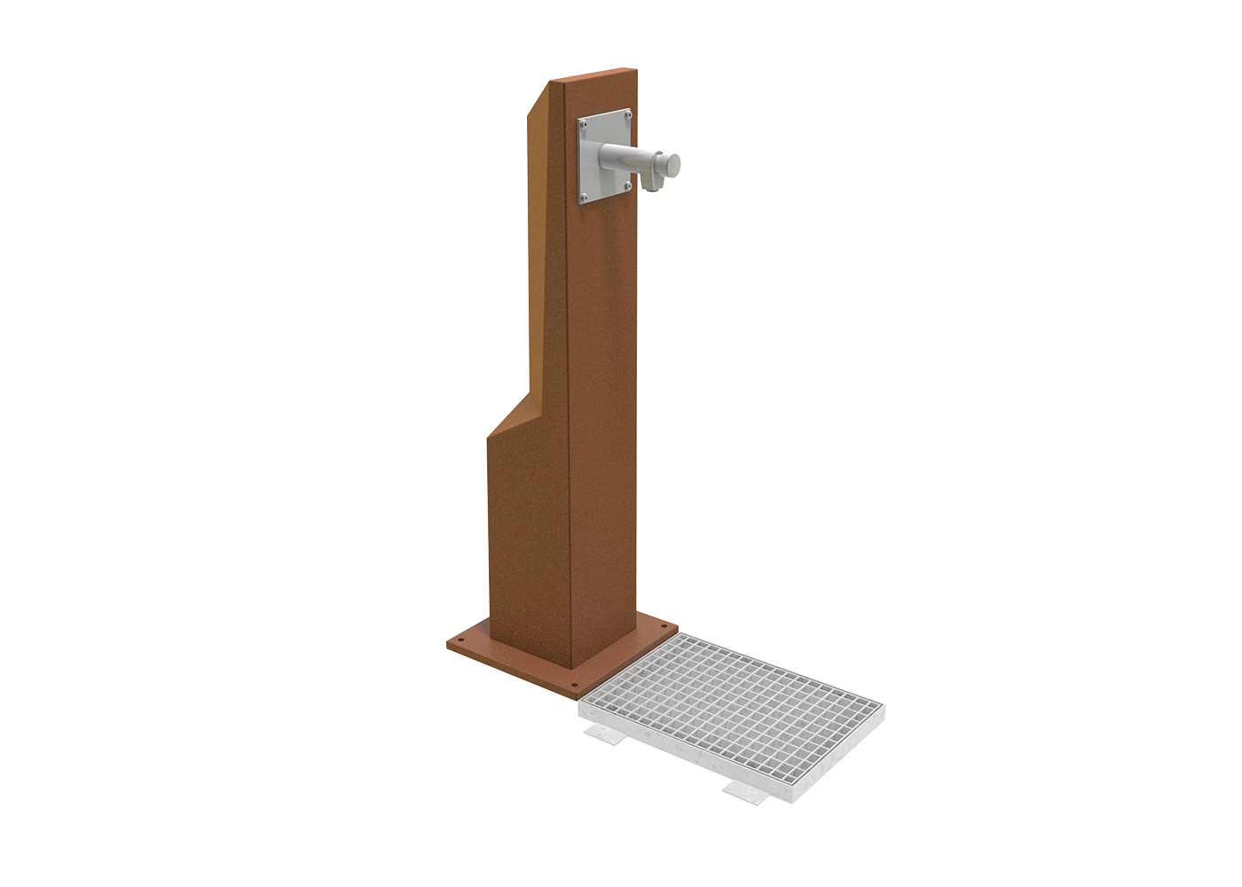 Fontääni disain on inspireeritud Corten-terase välimusest, mis annab sellele modernse ja arhitektuurse ilme ning sobib hästi linnaruumi ja haljastuse elementidega.