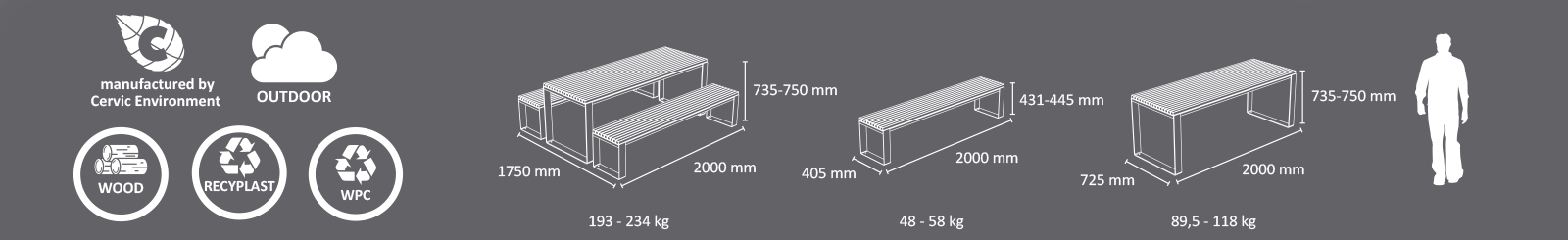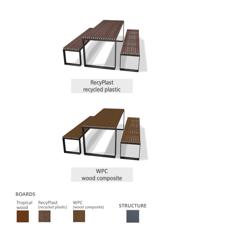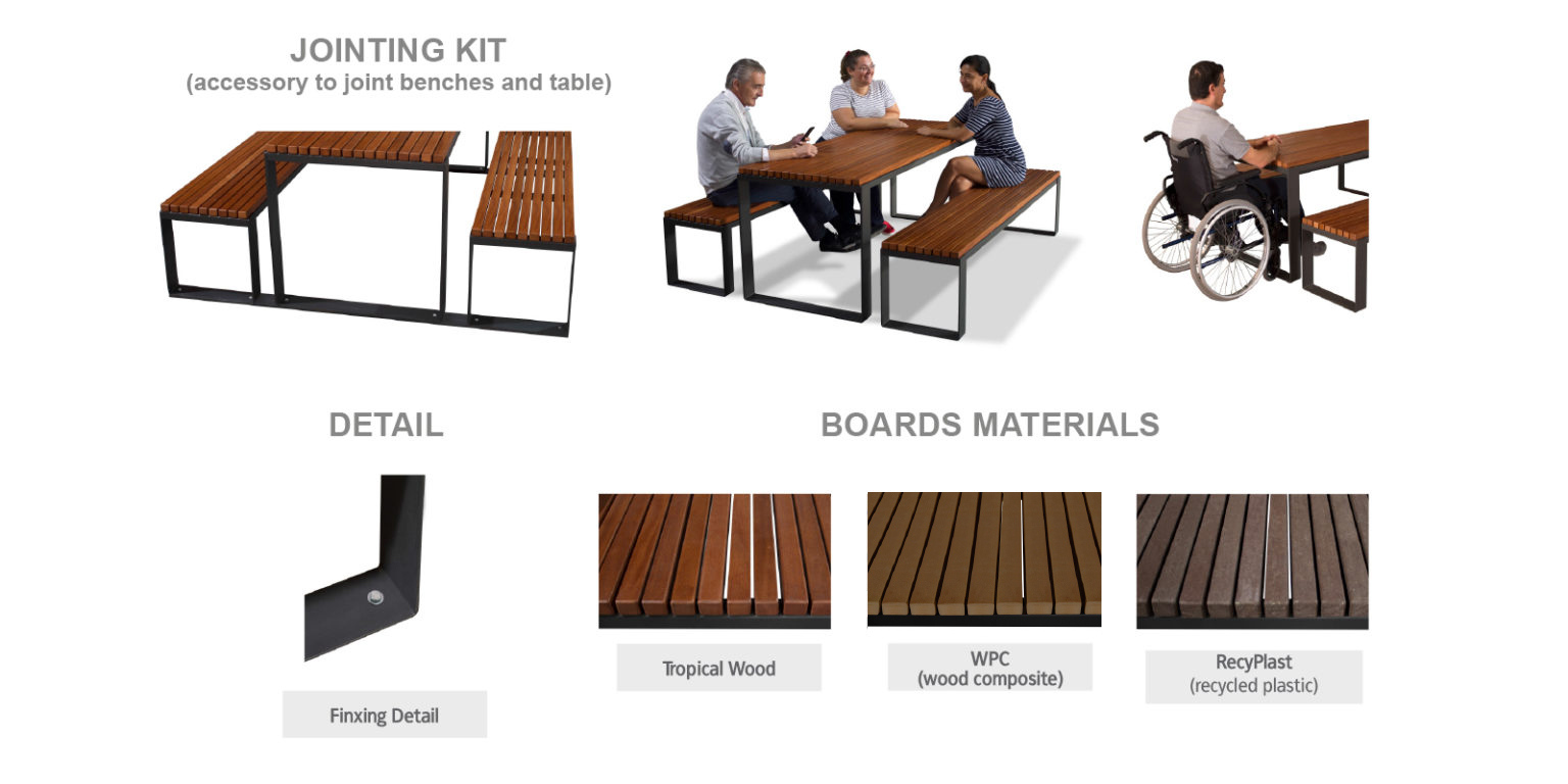 Komplekt sobib suurepäraselt parkidesse, puhkealadele, linnaväljakutele, promenaadidele, koolide ja ärikeskuste välialadele.