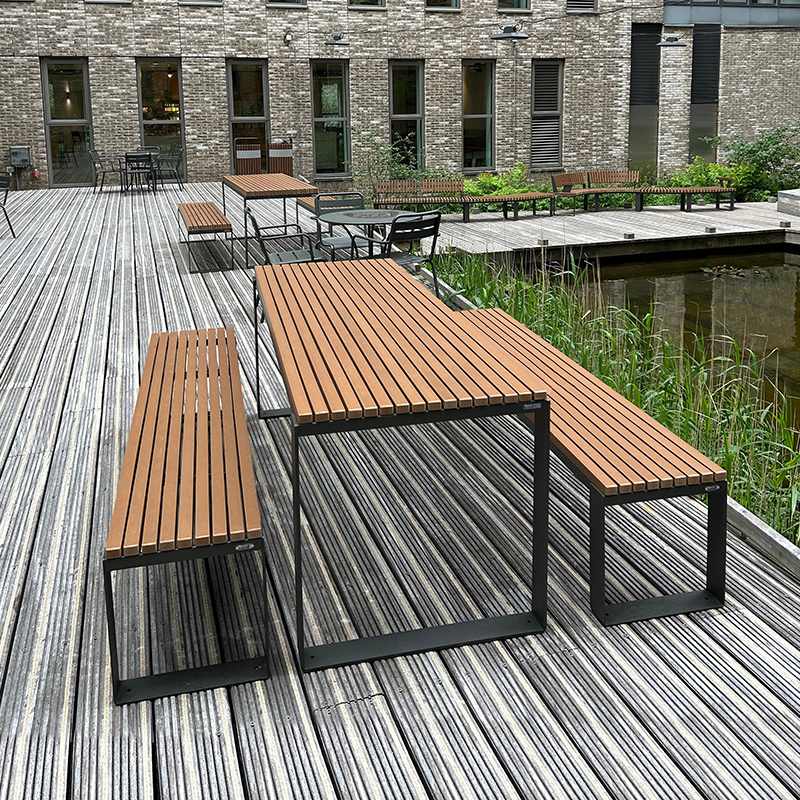 Piknikukomplekt Malaga on modernse disainiga linnamööbli lahendus, mis pakub mugavat istumis- ja söögiala avalikus ruumis. Komplekt koosneb lauast ja kahest pingist, mida saab tellida ka eraldi.