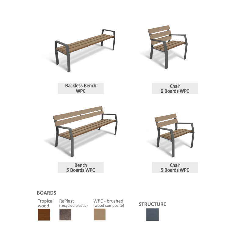RePlast ja WPC versioonid on hooldusvabad ning sobivad eriti hästi promenaadidele, rannikualadele ja intensiivse kasutusega avalikku ruumi.