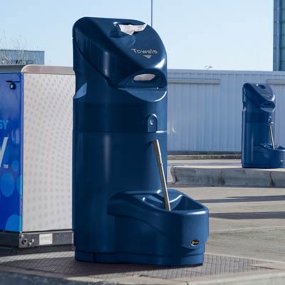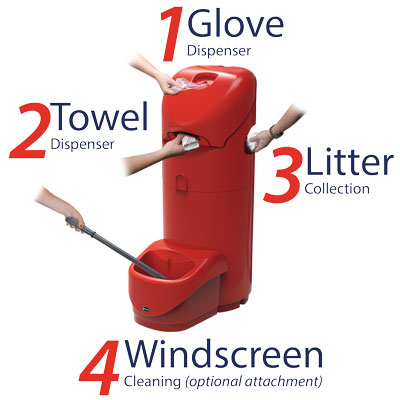 Prügikast Auto-Mate on spetsiaalselt loodud bensiinijaamade ja tanklate jaoks, pakkudes ruumisäästlikku lahendust, mis ühendab prügikasti, paberrätikuhoidja ja kindajaoturi ühte seadmesse.