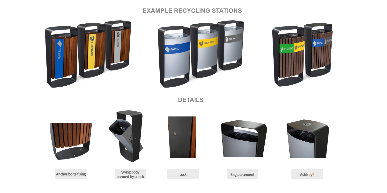 Stiilne ja vastupidav prügikast Malaga parkidesse, linnaruumi ja avalikesse hoonetesse.