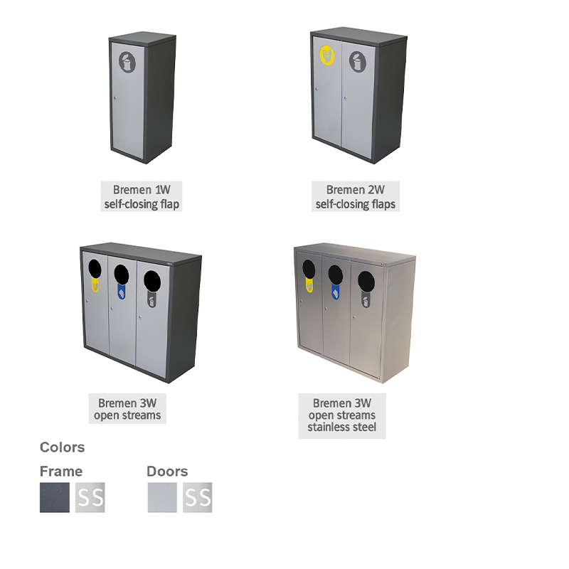 Prügikast Bremen on vastupidava konstruktsiooniga sorteerimisprügikast, mis sobib suurepäraselt kasutamiseks parkides, linnaväljakutel, kaubanduskeskustes, kontorites ja muudes avaliku ruumi keskkondades.
