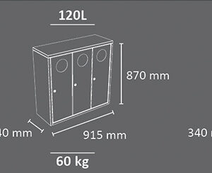 -3 sektsiooni- 120 liitrit (340x915x870mm)