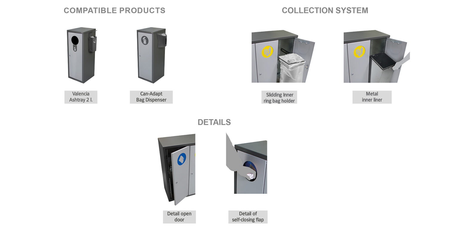 Minimalistlik ja tugev disain teeb sellest prügikastist töökindla lahenduse nii sise- kui ka välistingimustes, võimaldades jäätmete lihtsat ja mugavat sorteerimist.
