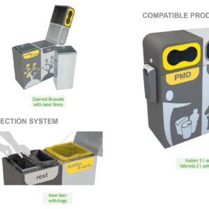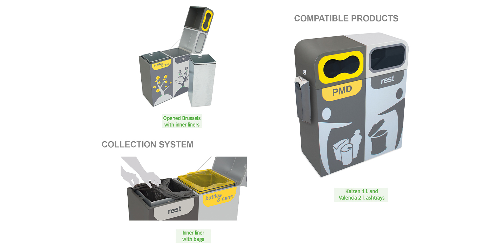 Kahe sektsiooniga sorteerimisprügikast Brussels avalikku ruumi, kontoritesse ja kaubanduskeskustesse.