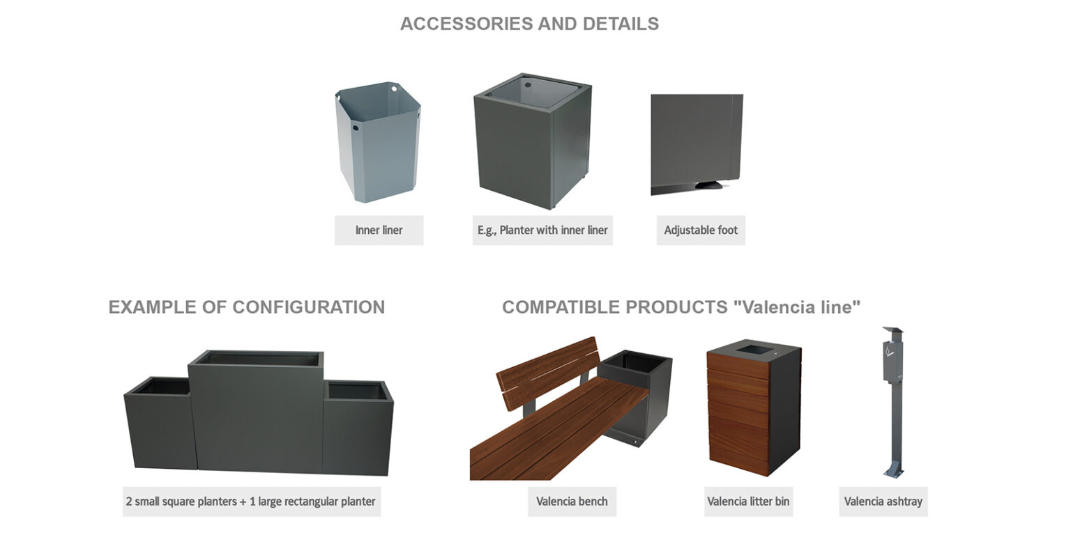 Valencia on modernse disainiga metallist istutuskast, mis sobib linnaruumi, parkidesse ja ettevõtete välialade haljastamiseks.