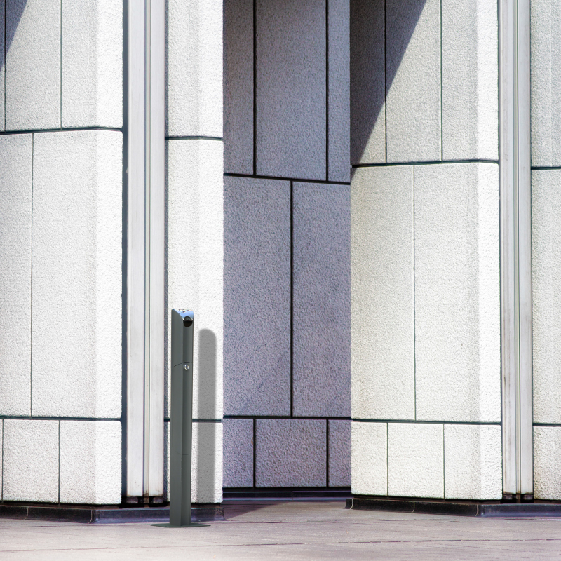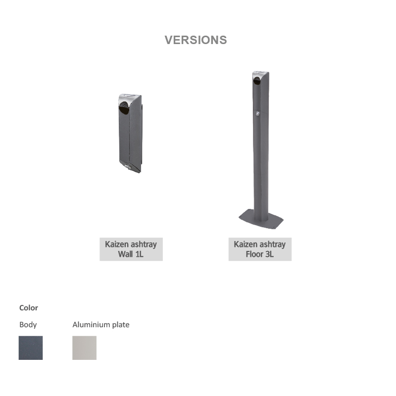 Kaizen on kaasaegne metallist tuhatoos vihmakatte ja lukustatava sisekonteineriga, sobides kasutamiseks avalikes suitsetamisalades.